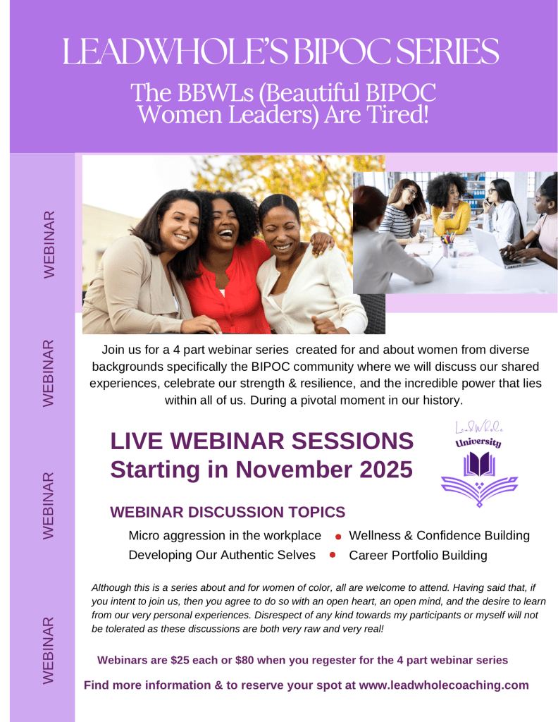 So go ahead, fix your face, readjust that crown 👑, and join me for a four part series of webinars designed by us, for us, and at a time when we need more than ever to remember who we are so that we can effectively address and navigate 🧭 where we go from here.