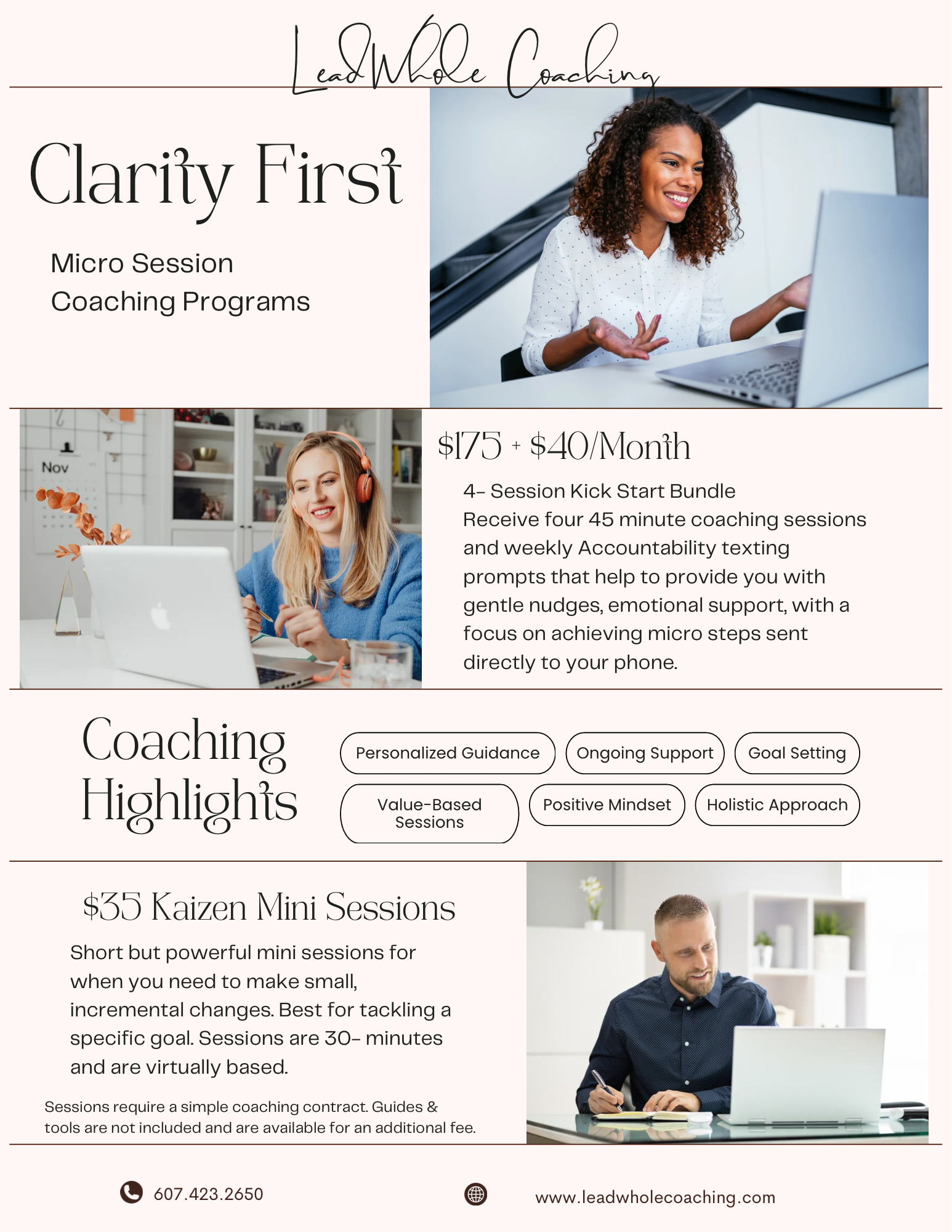 At LeadWhole Coaching, our goal is to make your investment in yourself both achievable and rewarding.